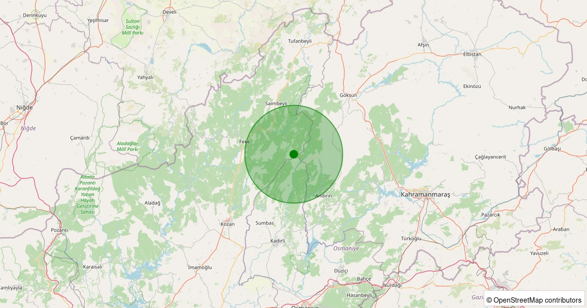 Son 7 gün içinde Saimbeyli - Halilbeyli noktasından 100 km yarıçap içerisinde meydana gelen diğer depremler: