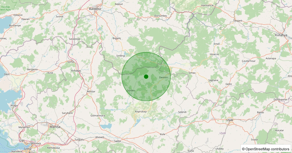 Son 7 gün içinde Gördes - Doğanpınar noktasından 100 km yarıçap içerisinde meydana gelen diğer depremler: