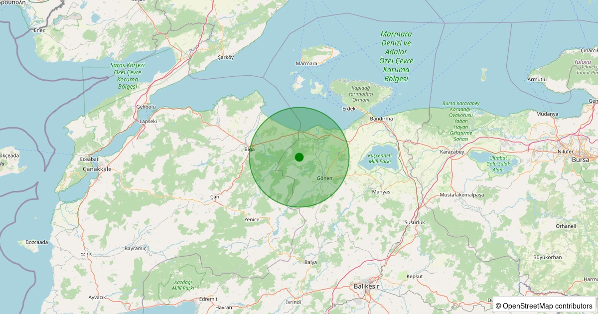 Son 7 gün içinde Gönen - Armutlu noktasından 100 km yarıçap içerisinde meydana gelen diğer depremler: