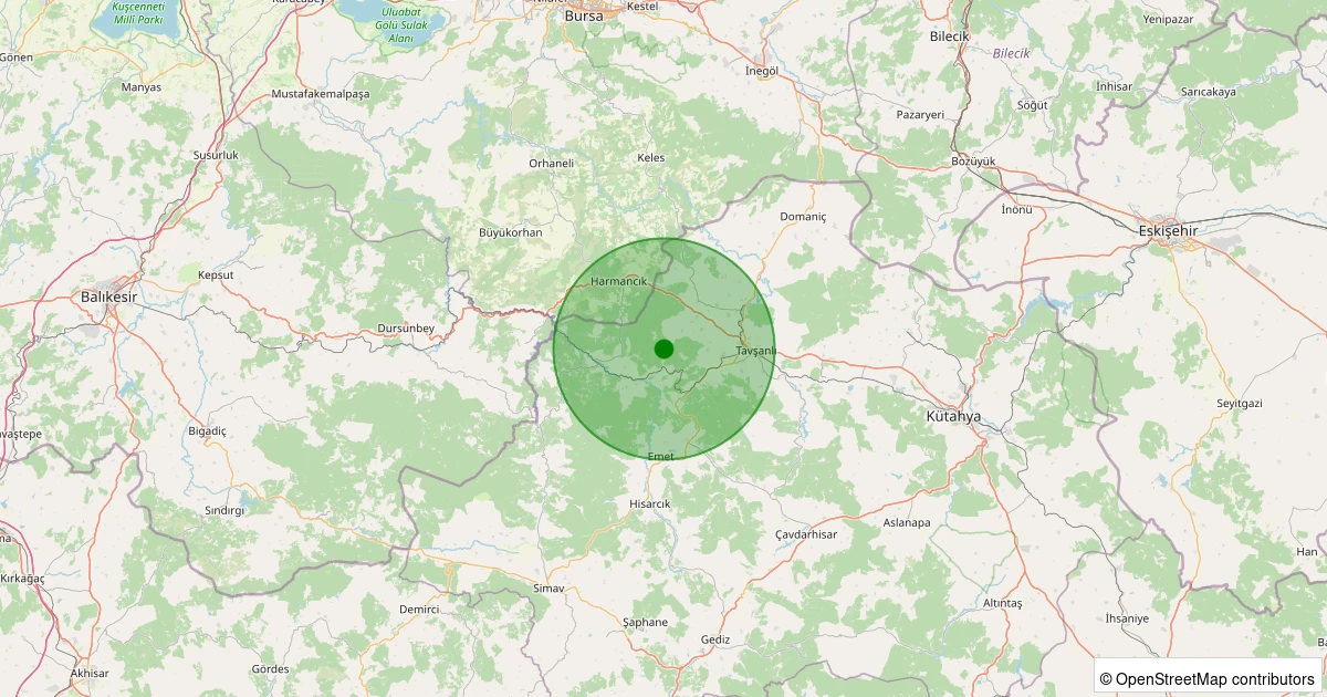 Son 7 gün içinde Tavşanlı - Alabarda Köyü noktasından 100 km yarıçap içerisinde meydana gelen diğer depremler: