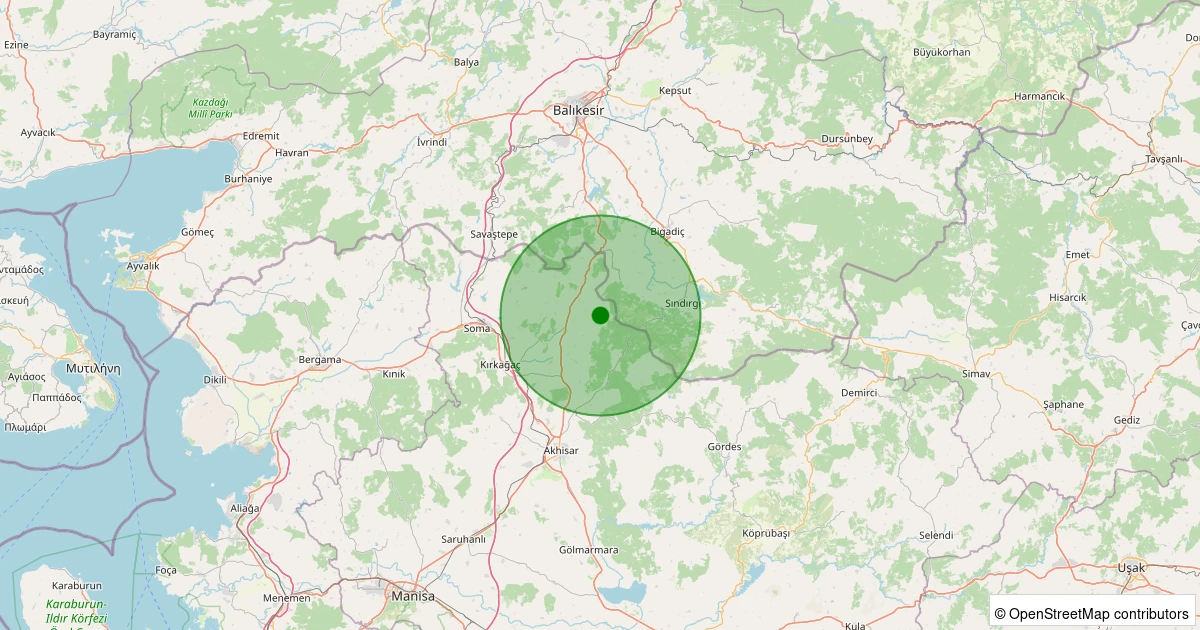 Son 7 gün içinde Kırkağaç - Dualar noktasından 100 km yarıçap içerisinde meydana gelen diğer depremler: