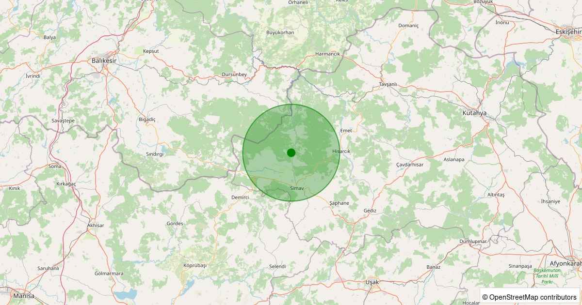 Son 7 gün içinde Simav - Yeniler Köyü noktasından 100 km yarıçap içerisinde meydana gelen diğer depremler: