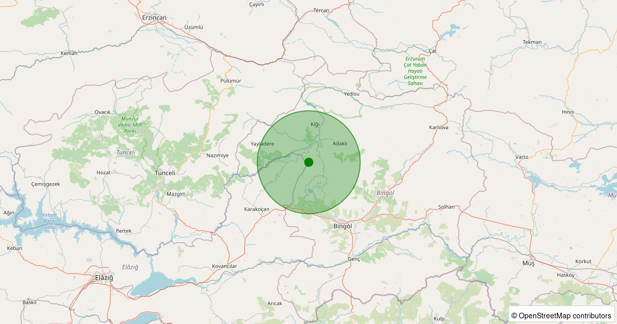 Son 7 gün içinde Kiğı - Çanakçı Köyü noktasından 100 km yarıçap içerisinde meydana gelen diğer depremler: