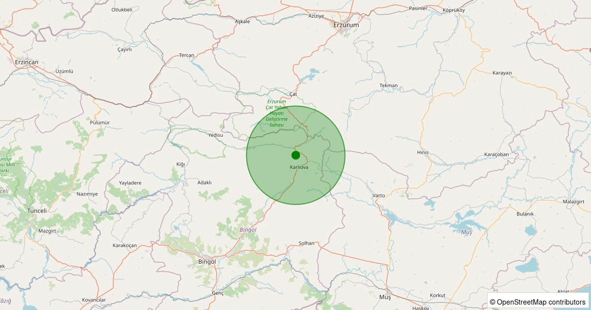 Son 7 gün içinde Karlıova - Dörtyol Köyü noktasından 100 km yarıçap içerisinde meydana gelen diğer depremler:
