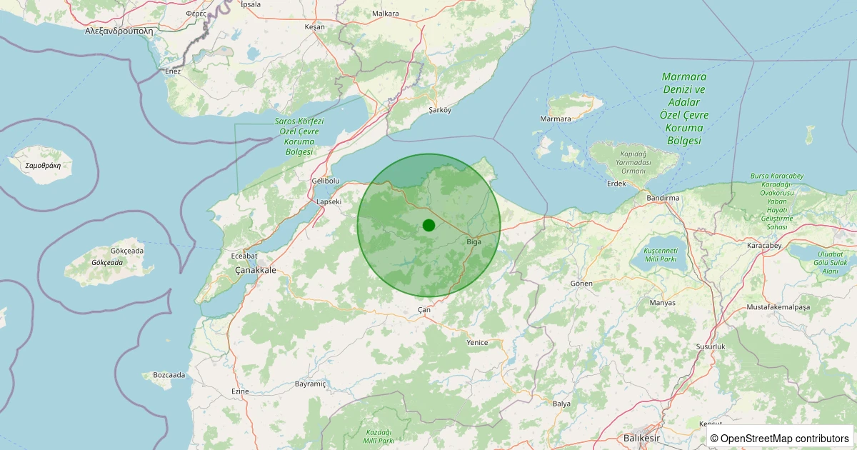 Son 7 gün içinde Biga - Selvi Köyü noktasından 100 km yarıçap içerisinde meydana gelen diğer depremler: