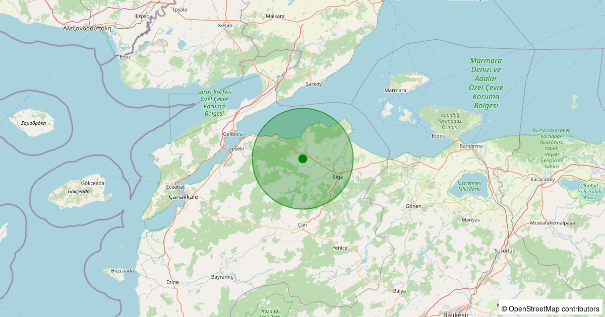 Son 7 gün içinde Biga - Çınardere Köyü noktasından 100 km yarıçap içerisinde meydana gelen diğer depremler: