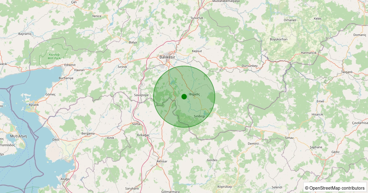 Son bir hafta içerisinde Balıkesir şehri Bigadiç - Çekirdekli noktasından 100 km yarıçap içerisinde toplamda 1328 deprem kaydedilmiştir. Bu depremlerden en büyüğü 3.7 büyüklüğünde ve en sığ odaklısı 0.00 kilometre derinlikte gerçekleşmiştir.