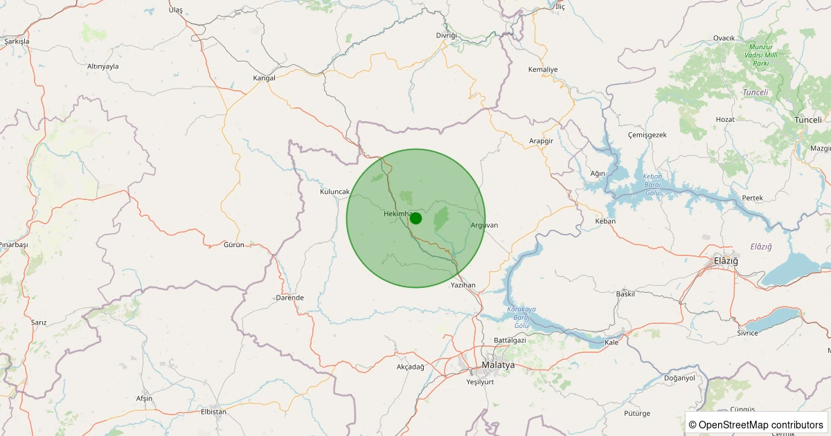 Son 7 gün içinde Hekimhan - Köprülü Mehmetpaşa noktasından 100 km yarıçap içerisinde meydana gelen diğer depremler: