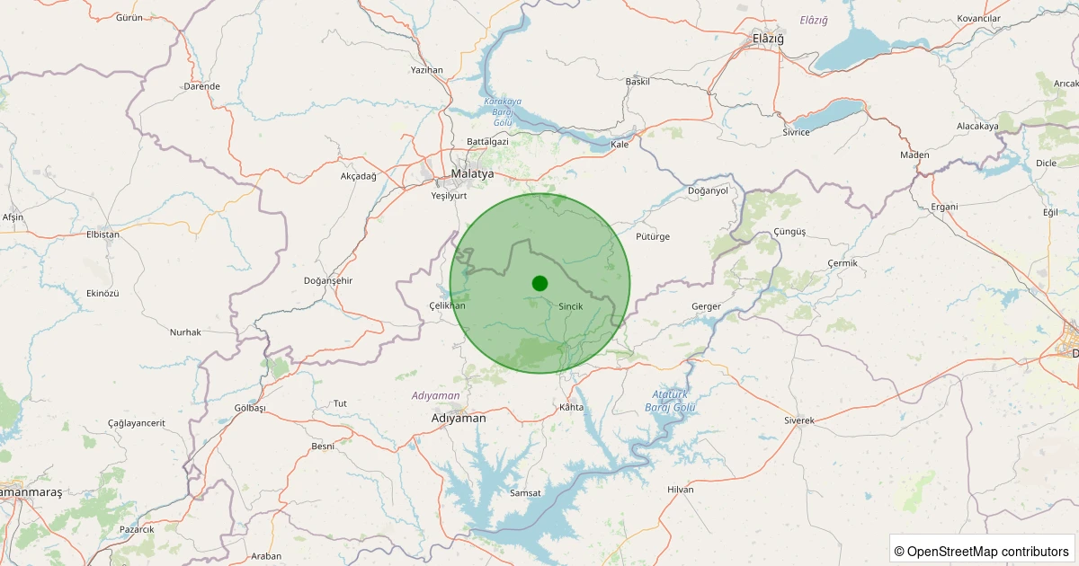 Son 7 gün içinde Sincik - Yarpuzlu Köyü noktasından 100 km yarıçap içerisinde meydana gelen diğer depremler: