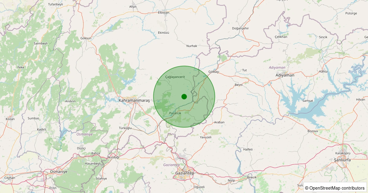 Son 7 gün içinde Pazarcık - Karaağaç noktasından 100 km yarıçap içerisinde meydana gelen diğer depremler:
