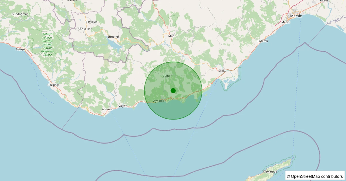 Son 7 gün içinde Gülnar - Beydili noktasından 100 km yarıçap içerisinde meydana gelen diğer depremler: