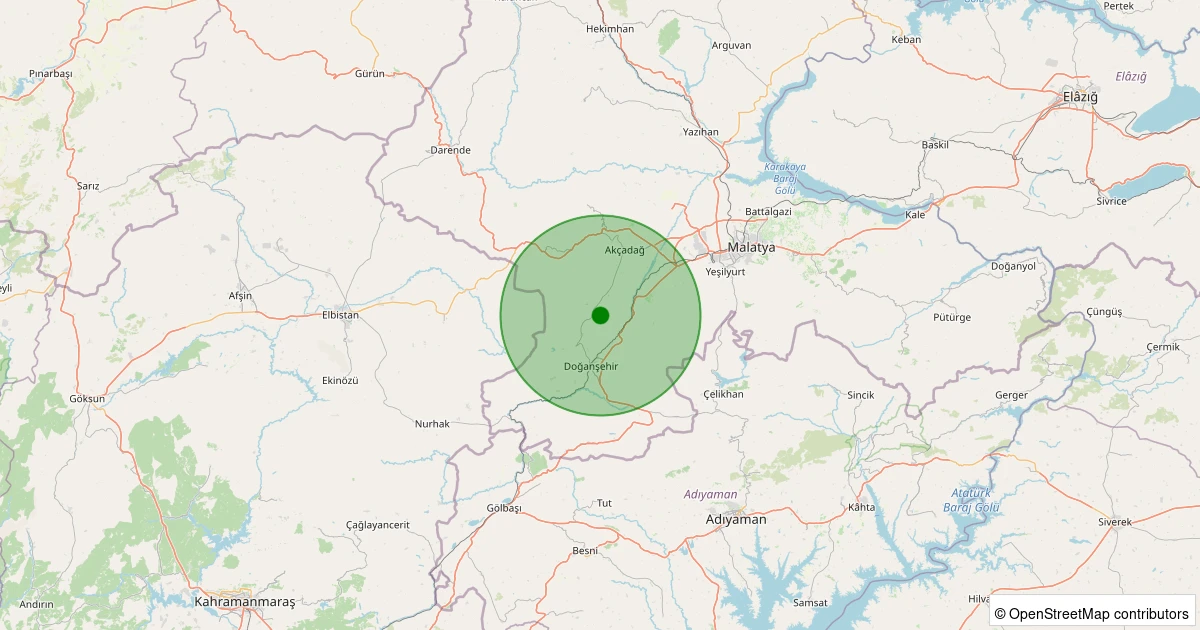 Son 7 gün içinde Doğanşehir - Karaterzi noktasından 100 km yarıçap içerisinde meydana gelen diğer depremler: