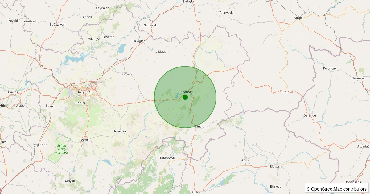 Son 7 gün içinde Pınarbaşı - Aşağıbeyçayır Köyü noktasından 100 km yarıçap içerisinde meydana gelen diğer depremler: