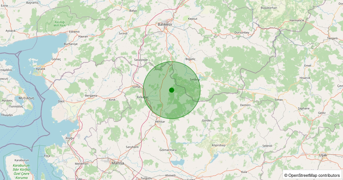 Son 7 gün içinde Akhisar - Yaykın Köyü noktasından 100 km yarıçap içerisinde meydana gelen diğer depremler: