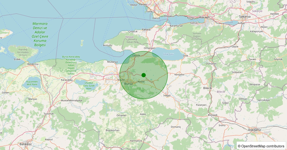 Son 7 gün içinde Gürsu noktasından 100 km yarıçap içerisinde meydana gelen diğer depremler: