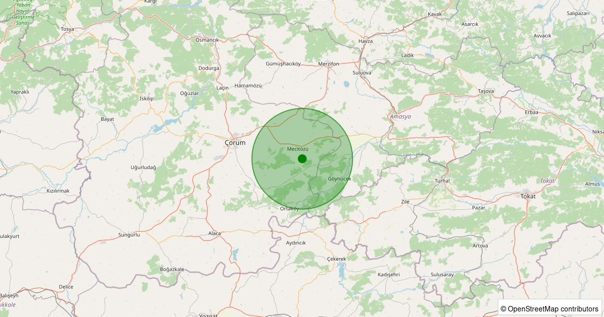 Son 7 gün içinde Mecitözü - Karacuma Köyü noktasından 100 km yarıçap içerisinde meydana gelen diğer depremler: