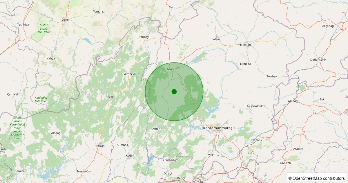 Son 7 gün içinde Onikişubat - Kumarlı noktasından 100 km yarıçap içerisinde meydana gelen diğer depremler: