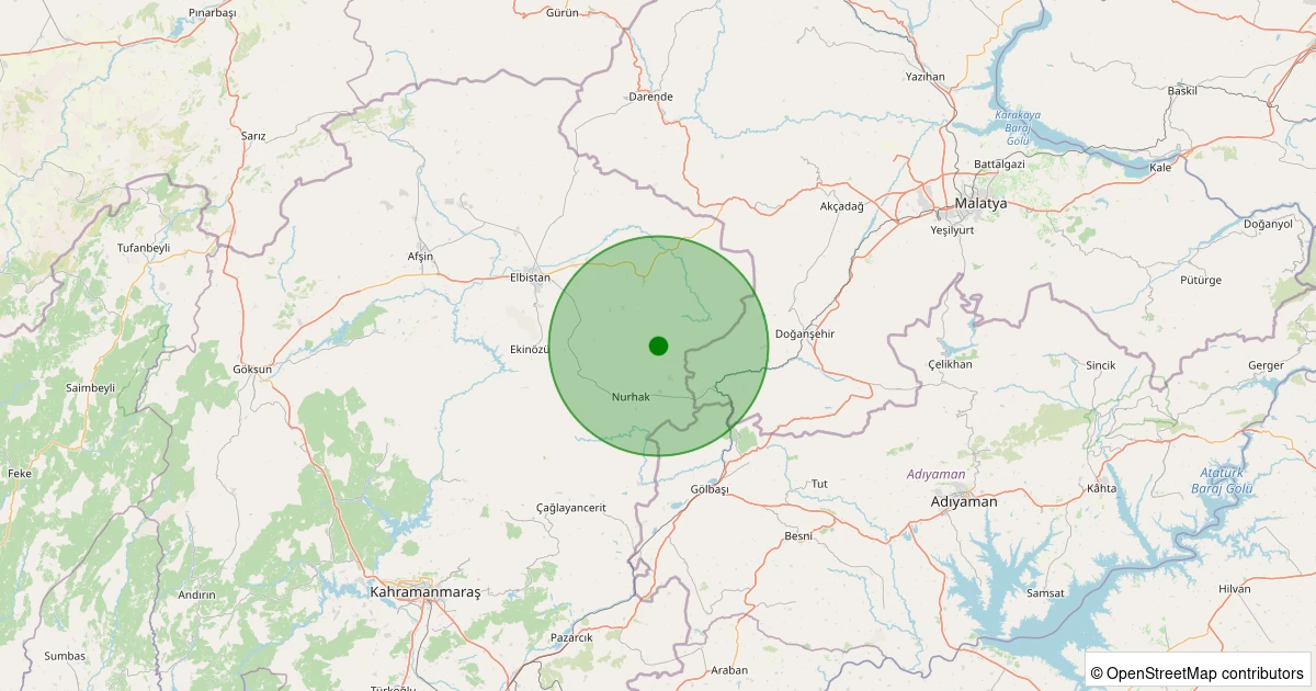 Son 7 gün içinde Elbistan - Karahasanuşağı Köyü noktasından 100 km yarıçap içerisinde meydana gelen diğer depremler: