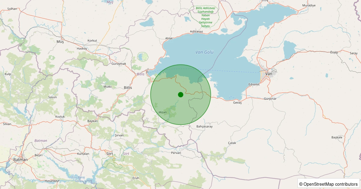 Son 7 gün içinde Tatvan - Sallıca Köyü noktasından 100 km yarıçap içerisinde meydana gelen diğer depremler: