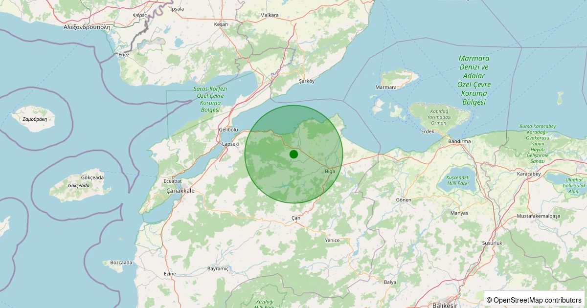 Son 7 gün içinde Biga - Gürgendere Köyü noktasından 100 km yarıçap içerisinde meydana gelen diğer depremler: