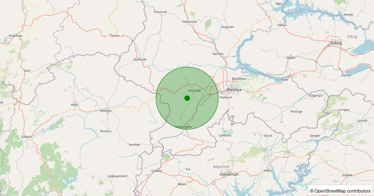 Son 7 gün içinde Akçadağ - İkinciler noktasından 100 km yarıçap içerisinde meydana gelen diğer depremler: