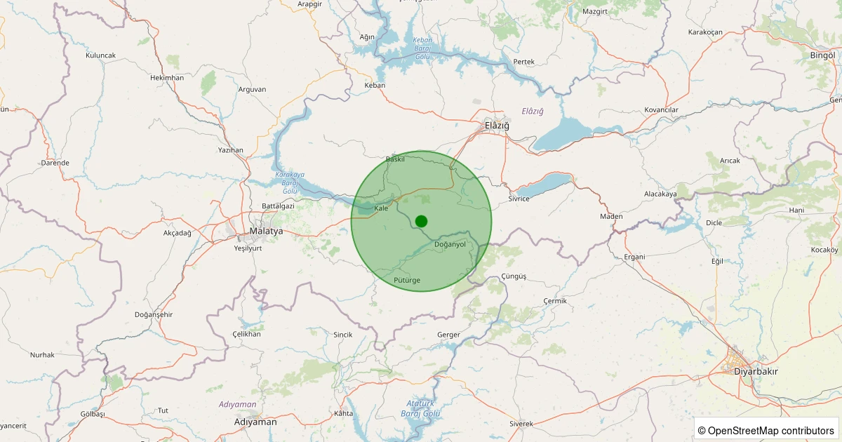 Son 7 gün içinde Sivrice - Gelindere Köyü noktasından 100 km yarıçap içerisinde meydana gelen diğer depremler: