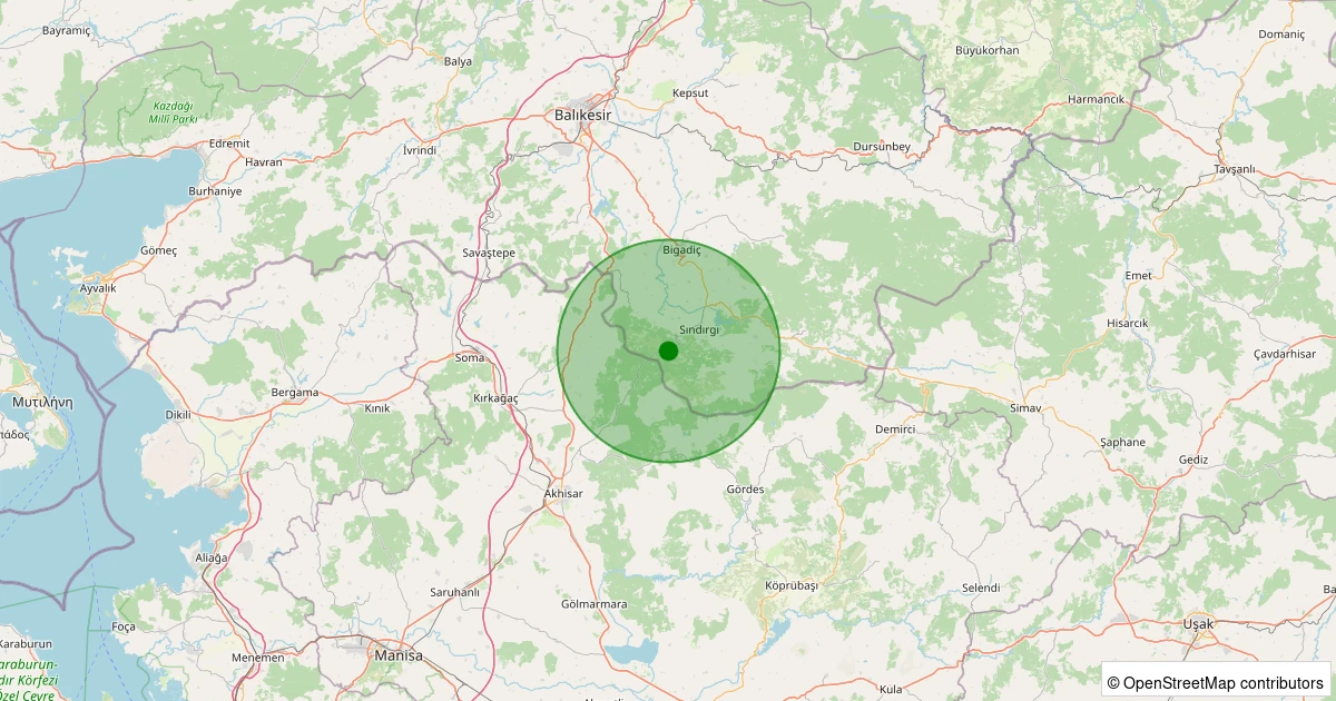 Son 7 gün içinde Sındırgı - Kertil noktasından 100 km yarıçap içerisinde meydana gelen diğer depremler: