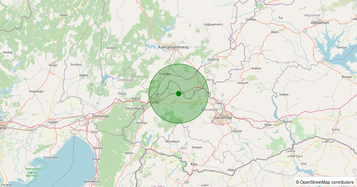 Son 7 gün içinde Nurdağı - Şatırhüyük noktasından 100 km yarıçap içerisinde meydana gelen diğer depremler: