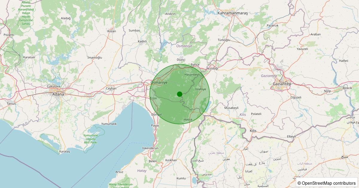 Son bir hafta içerisinde Osmaniye şehri Merkez - Dereobası Köyü noktasından 100 km yarıçap içerisinde toplamda 76 deprem kaydedilmiştir. Bu depremlerden en büyüğü 2.3 büyüklüğünde ve en sığ odaklısı 2.70 kilometre derinlikte gerçekleşmiştir.