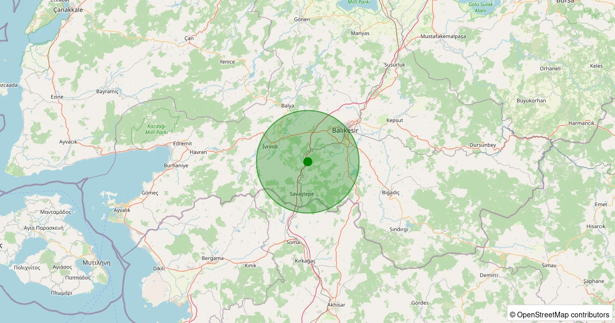 Son 7 gün içinde Savaştepe - Söğütcük noktasından 100 km yarıçap içerisinde meydana gelen diğer depremler: