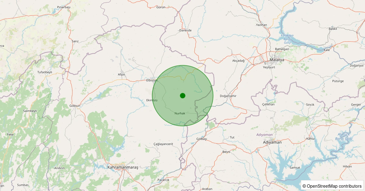 Son 7 gün içinde Elbistan - Bakış-Soğucak Köyü noktasından 100 km yarıçap içerisinde meydana gelen diğer depremler: