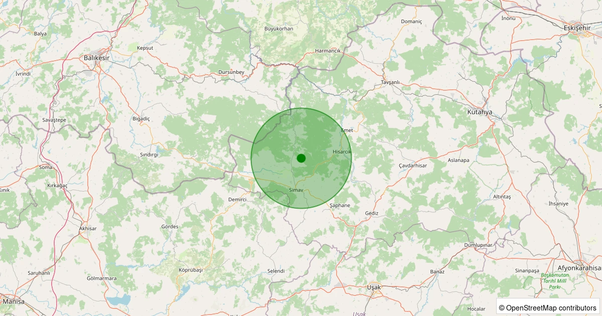 Son 7 gün içinde Simav - Yemişli Köyü noktasından 100 km yarıçap içerisinde meydana gelen diğer depremler: