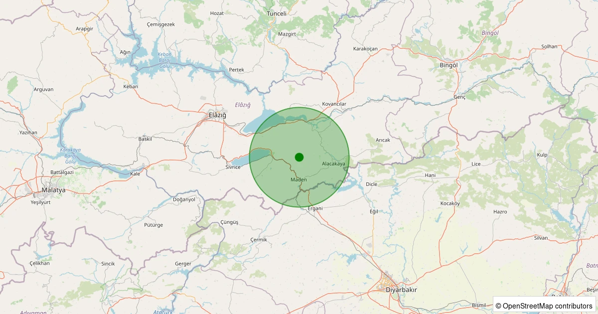 Son 7 gün içinde Maden - Kaşlıca Köyü noktasından 100 km yarıçap içerisinde meydana gelen diğer depremler: