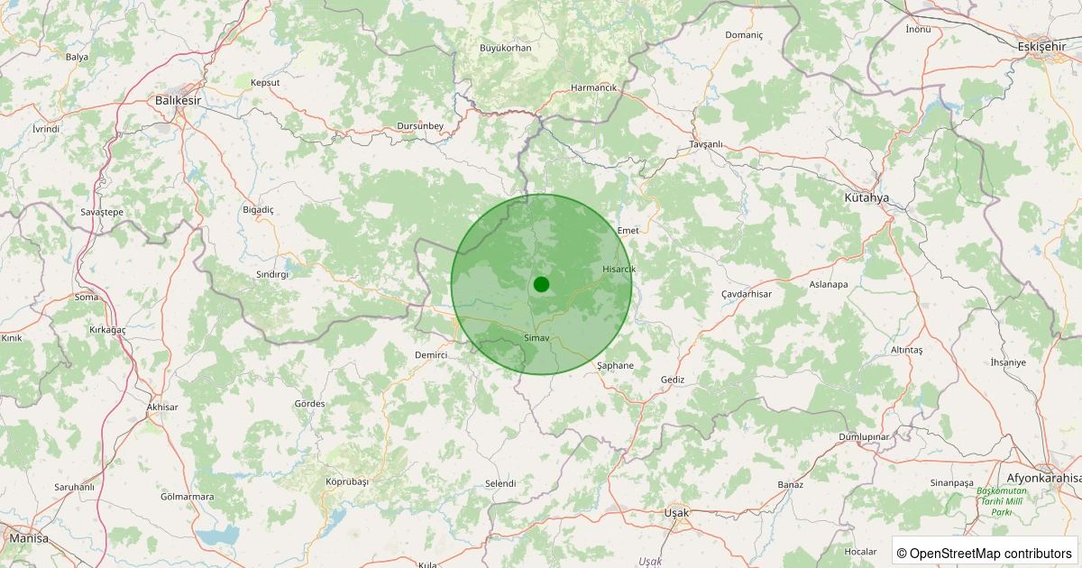 Son 7 gün içinde Simav - Yemişli Köyü noktasından 100 km yarıçap içerisinde meydana gelen diğer depremler: