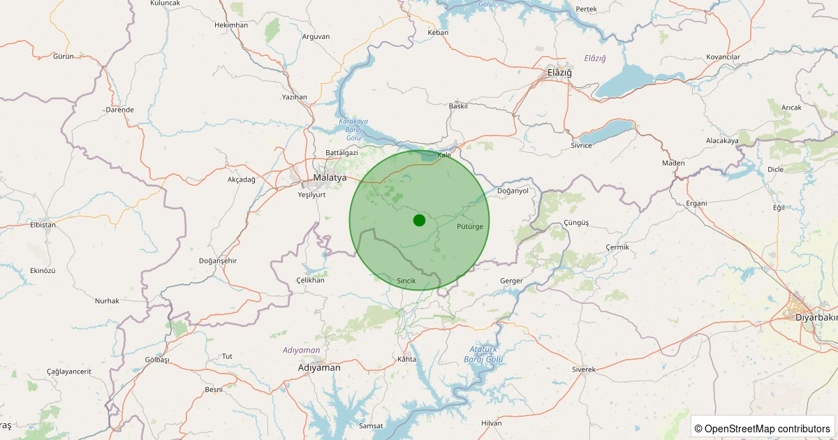 Son 7 gün içinde Pütürge - Kavaklıdere Köyü noktasından 100 km yarıçap içerisinde meydana gelen diğer depremler: