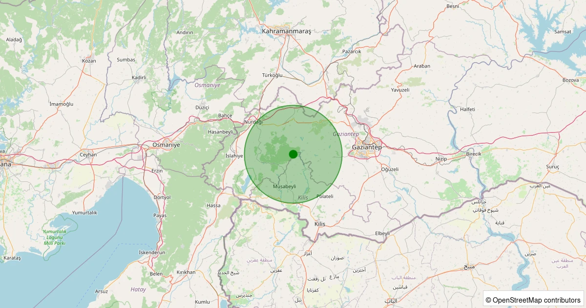 Son 7 gün içinde İslahiye - Yeniceli noktasından 100 km yarıçap içerisinde meydana gelen diğer depremler: