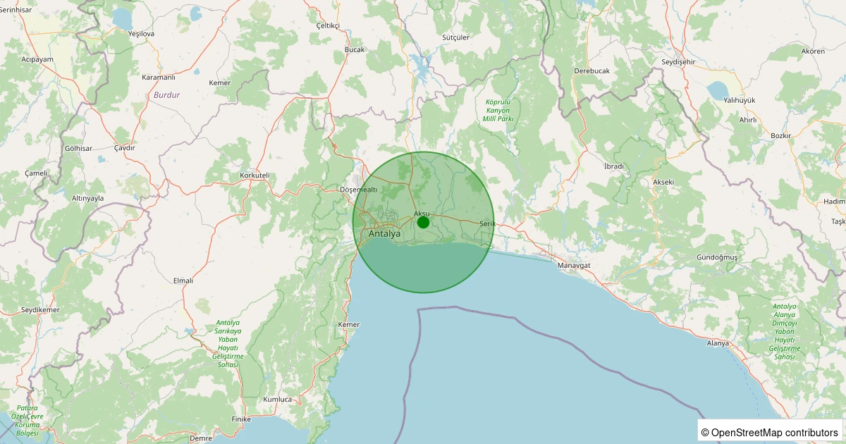 Son bir hafta içerisinde Antalya şehri Aksu - Mandırlar Köyü noktasından 100 km yarıçap içerisinde toplamda 23 deprem kaydedilmiştir. Bu depremlerden en büyüğü 2.4 büyüklüğünde ve en sığ odaklısı 2.10 kilometre derinlikte gerçekleşmiştir.