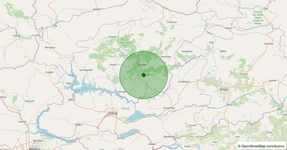 Son 7 gün içinde Mazgirt - Eltihatun noktasından 100 km yarıçap içerisinde meydana gelen diğer depremler: