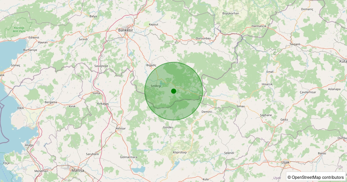 Son 7 gün içinde Sındırgı - Osmanlar noktasından 100 km yarıçap içerisinde meydana gelen diğer depremler: