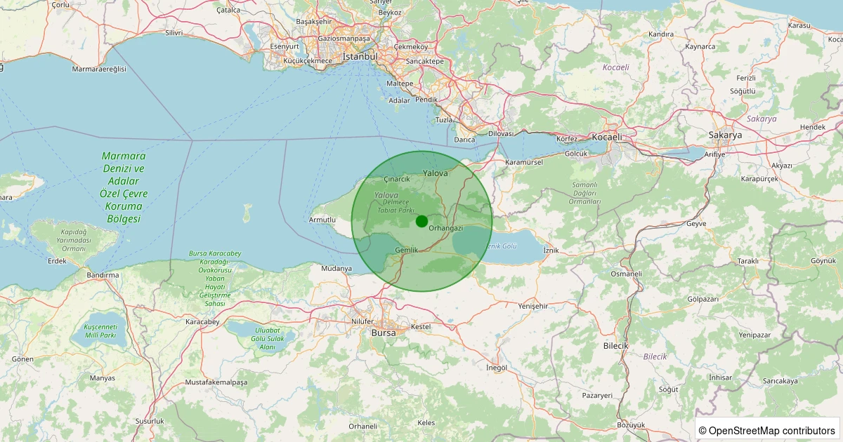 Son 7 gün içinde Orhangazi - Hamzalı noktasından 100 km yarıçap içerisinde meydana gelen diğer depremler: