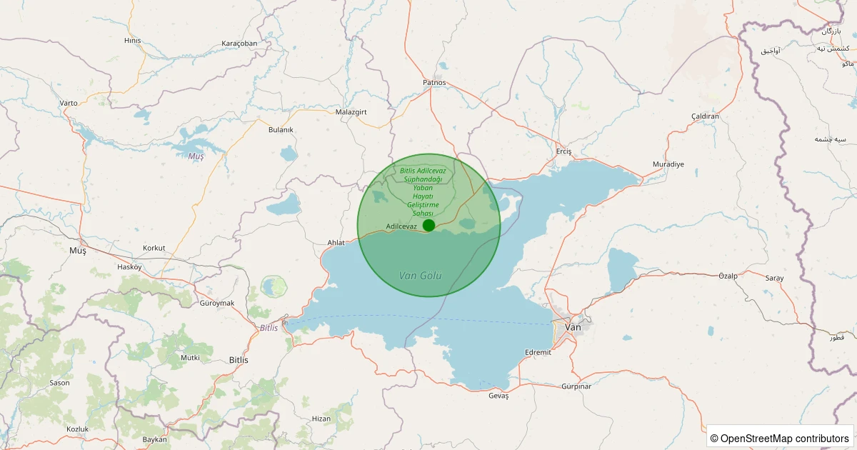 Son 7 gün içinde Adilcevaz - Yukarı Suphan K. Köyü noktasından 100 km yarıçap içerisinde meydana gelen diğer depremler: