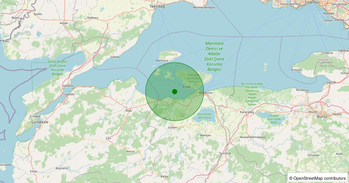 Son 7 gün içinde ERDEK noktasından 100 km yarıçap içerisinde meydana gelen diğer depremler: