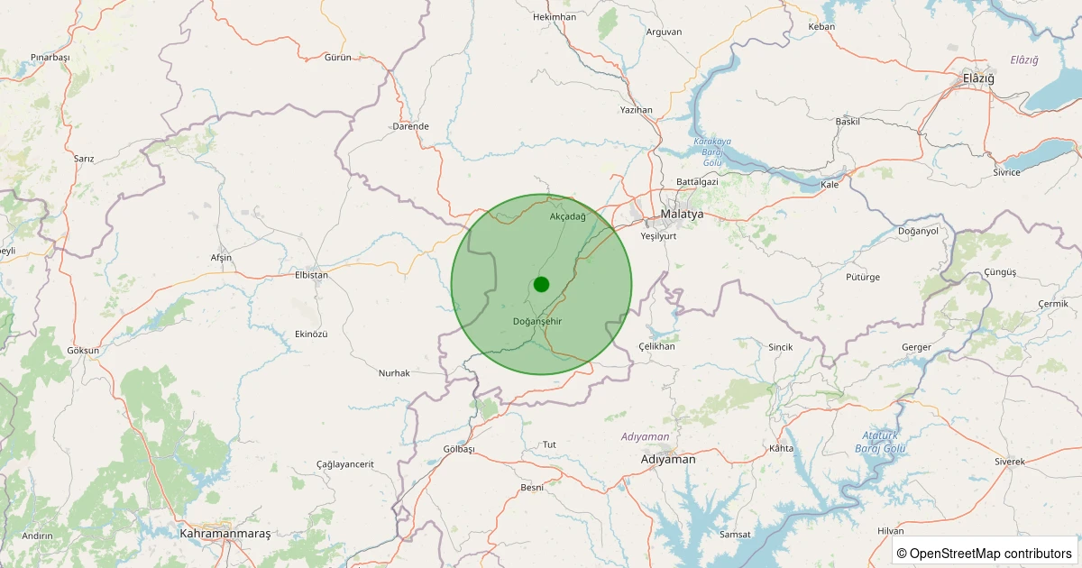 Son 7 gün içinde Doğanşehir - Karaterzi noktasından 100 km yarıçap içerisinde meydana gelen diğer depremler: