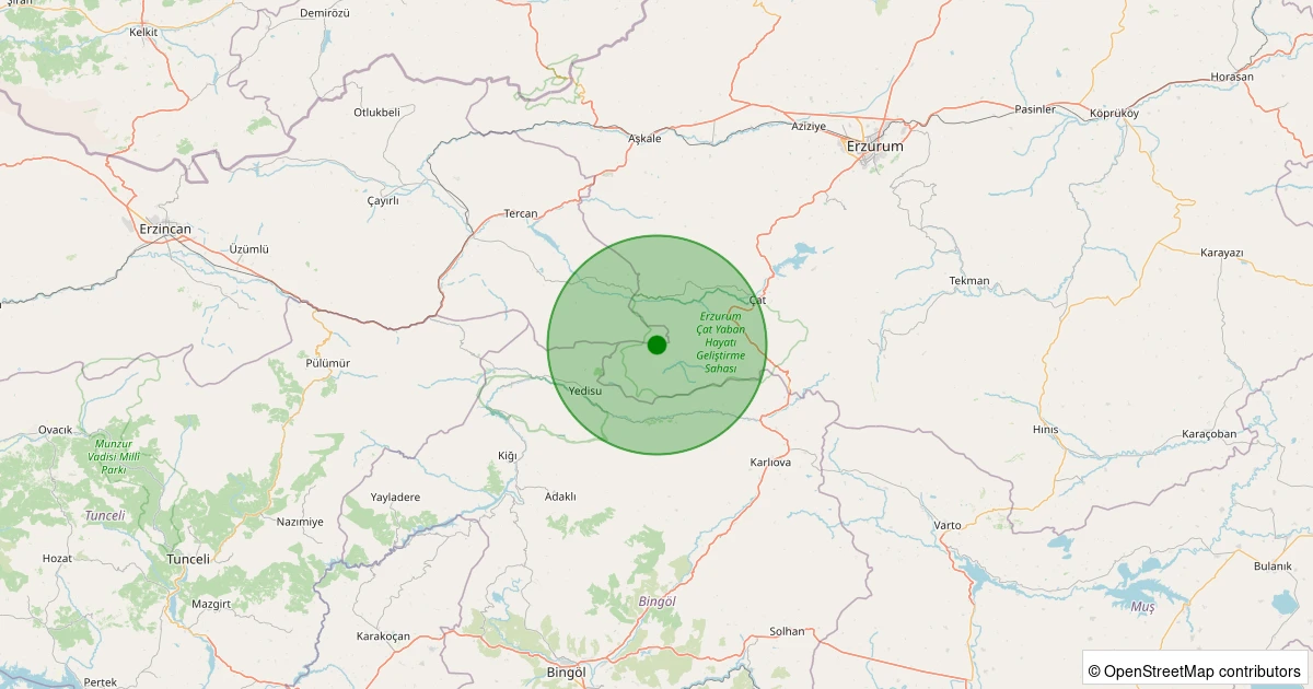 Son 7 gün içinde Tercan - Yaylım Köyü noktasından 100 km yarıçap içerisinde meydana gelen diğer depremler: