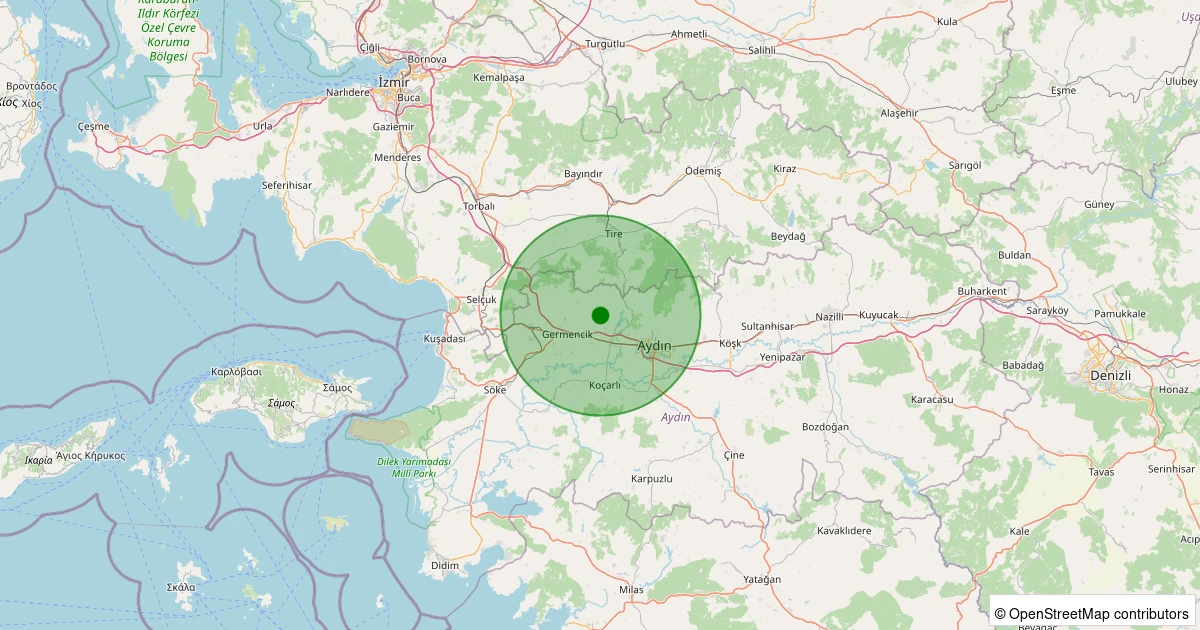 Son 7 gün içinde İncirliova - Eğrek noktasından 100 km yarıçap içerisinde meydana gelen diğer depremler: