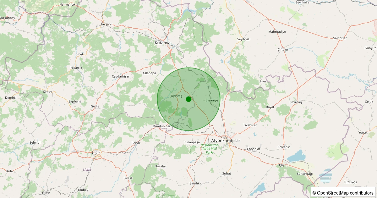 Son 7 gün içinde Altıntaş - Yolçatı Köyü noktasından 100 km yarıçap içerisinde meydana gelen diğer depremler: