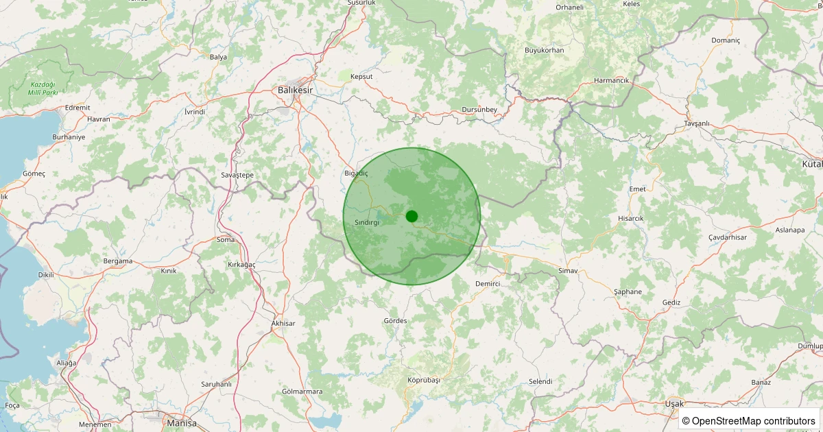 Son 7 gün içinde Sındırgı - Kıranköy noktasından 100 km yarıçap içerisinde meydana gelen diğer depremler: