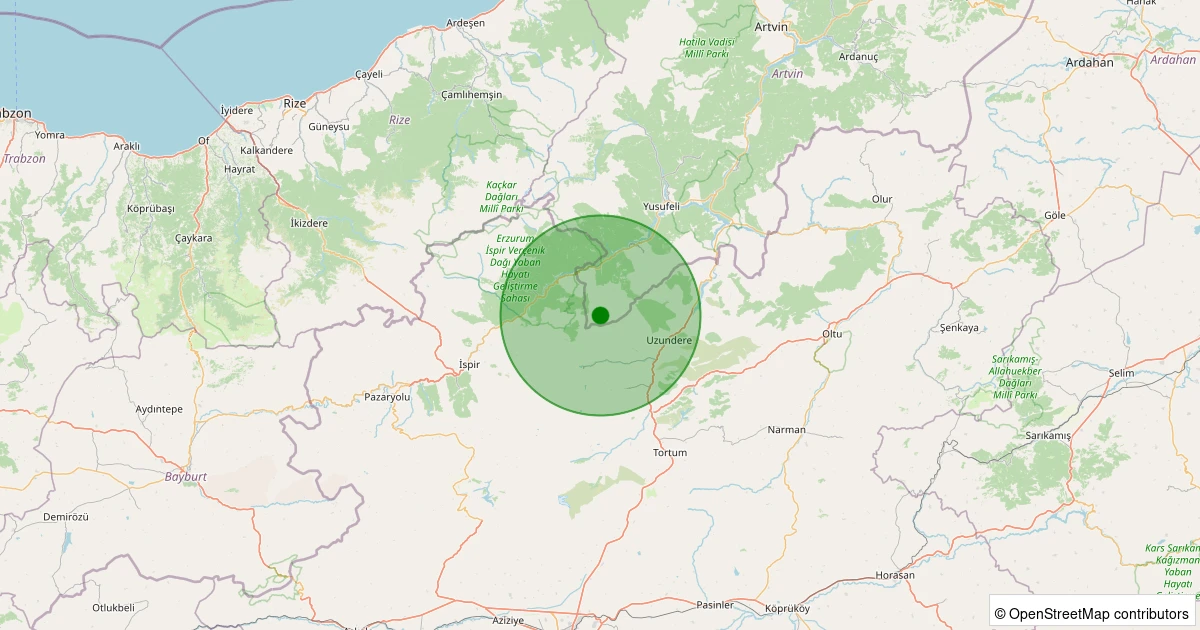 Son 7 gün içinde Yusufeli - Yamaçüstü Köyü noktasından 100 km yarıçap içerisinde meydana gelen diğer depremler: