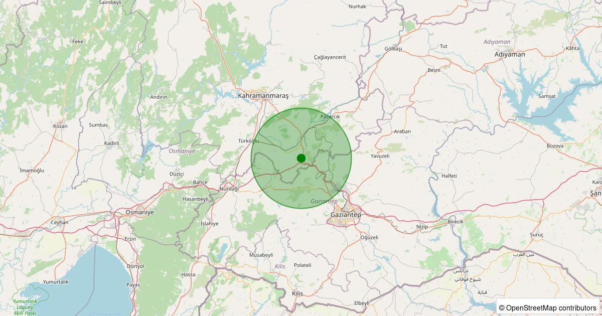 Son 7 gün içinde Pazarcık - Hanobası noktasından 100 km yarıçap içerisinde meydana gelen diğer depremler: