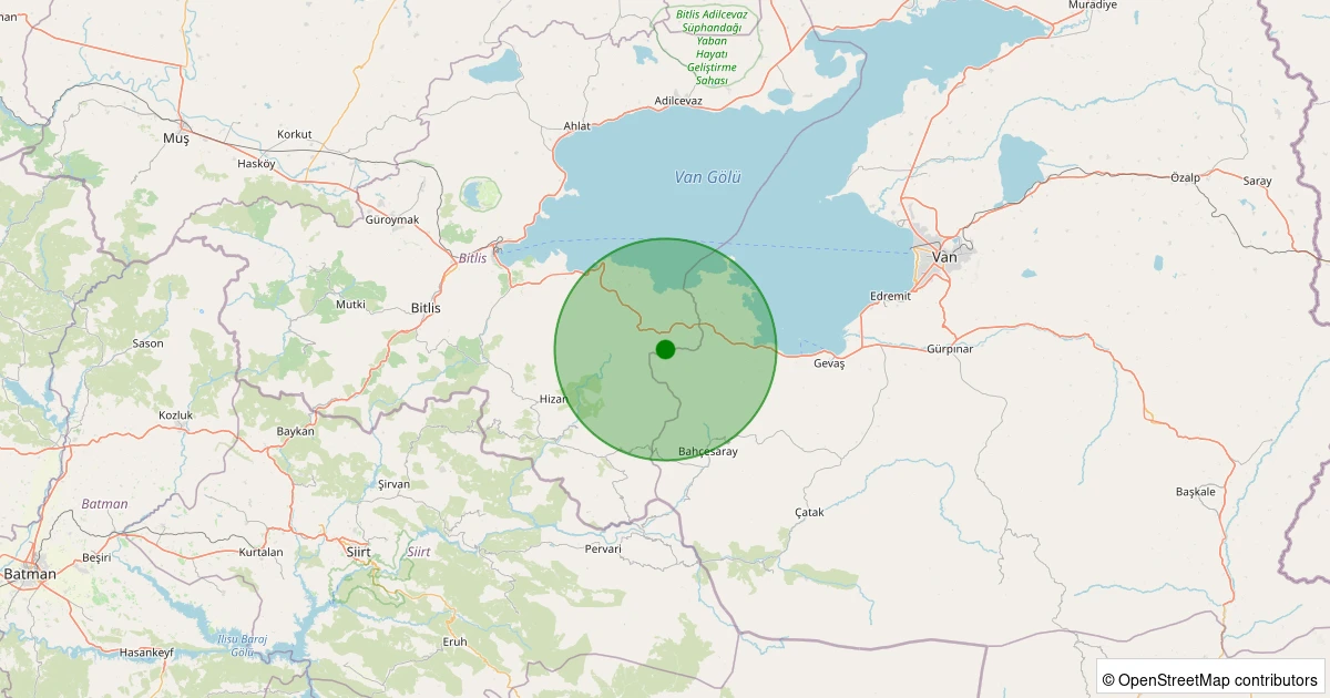 Son 7 gün içinde Tatvan - Koruklu Köyü noktasından 100 km yarıçap içerisinde meydana gelen diğer depremler:
